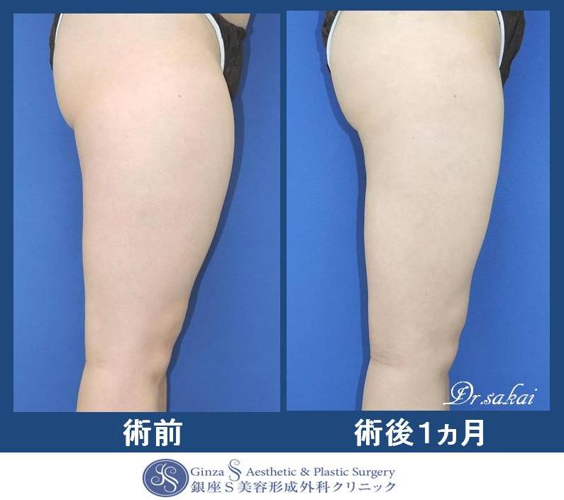 最も脂肪が多く吸引できる場所は太ももですので、通常は太もも全体から吸引します。