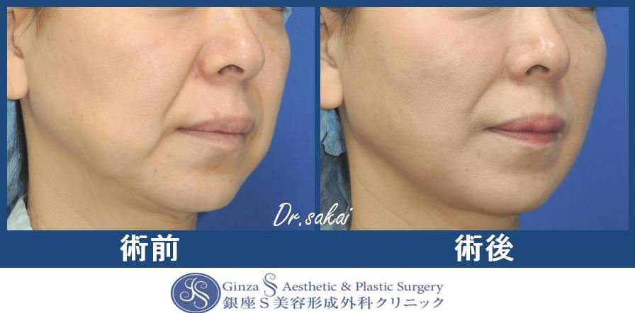 糸リフトの引き上げと、チークラインに脂肪注入も追加したので、頬全体の輪郭が引き上がって若々しくなりました![]()